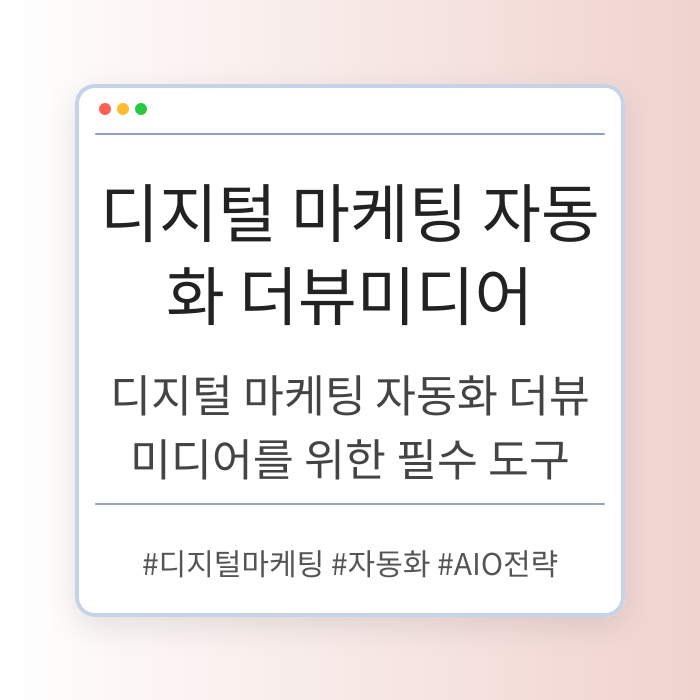지능형 마케팅 솔루션 더뷰미디어은 블로그 자동화 도구의 효과를 극대화하기 위해 필수적인 요소입니다. 다양한 도구의 특징을 비교하고, 더뷰미디어의 AIO 전략을 통해